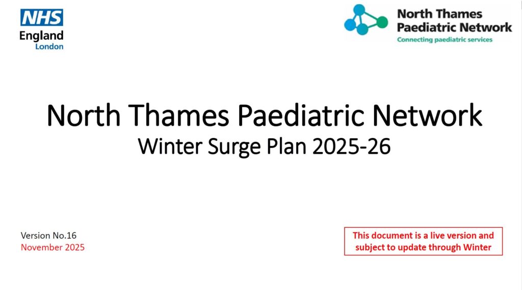 The North Thames Paediatric Network supports its network provider hospitals and integrated care systems with planning and guidance support for Winter and capacity surges.